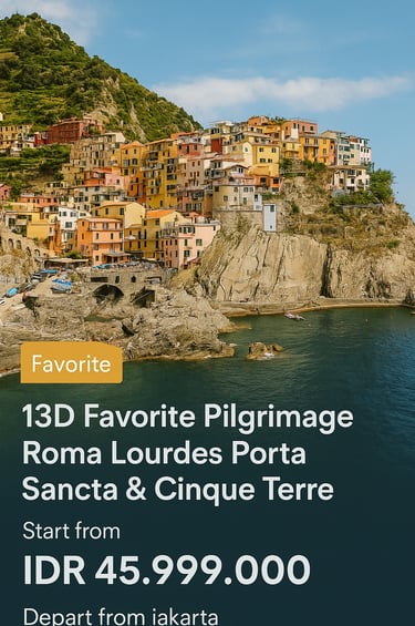 13D Favorite Pilgrimage Roma Lourdes Porta Sancta & Cinque Terre