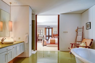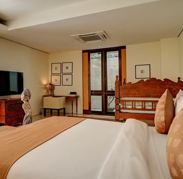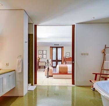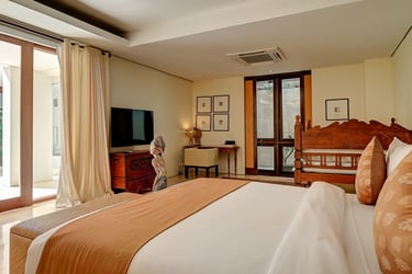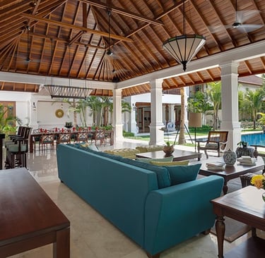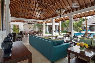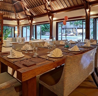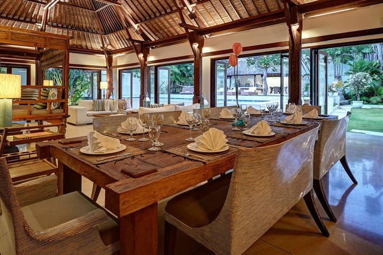 You’ll love how the thoughtfully curated decor throughout this villa reflects the true essence of Bali, from the Balinese Hindu home temple nestled in a corner of its lush central garden to the antique furniture and locally inspired artwork throughout its interior. Whether you’re lounging on the poolside bale or enjoying a book in the living room’s ornately carved Javanese daybed, each bespoke element adds to the distinction of this retreat.