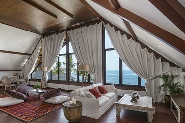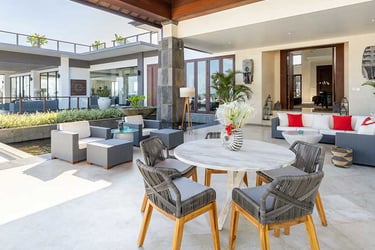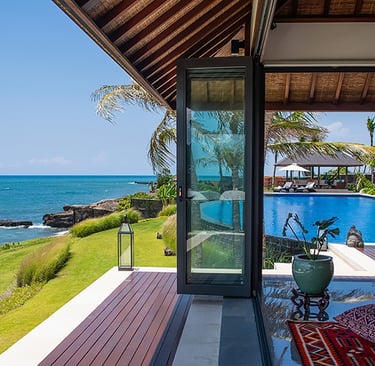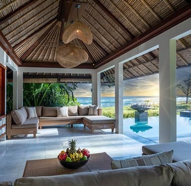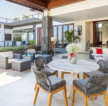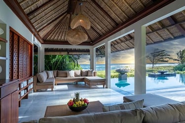 Recently built in 2022, Tirtha Bayu Villa I boasts contemporary lines complemented by luxurious leather furnishings. Hand-picked antiques and artwork from around Indonesia create a distinct sense of place and set the stage. Enjoy glorious ocean views from its vantage point on top of a cliff. Vast air-conditioned open-plan living spaces allow for large gatherings and spill into a resplendent dining room and kitchen, allowing for social evenings.