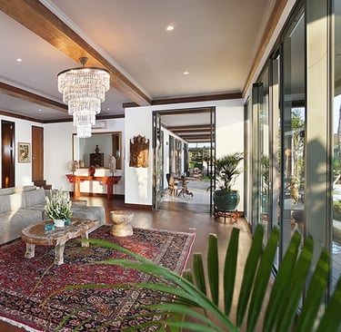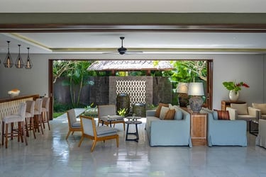Seseh Beach Villa II lies just behind its five-bedroom sister, Seseh Beach Villa I, which overlooks the ocean. The two properties are linked by an interconnecting garden door (only open when a single group occupies both properties), thereby providing an 11-bedroom renting option, complete with two swimming pools – perfect for weddings and events.